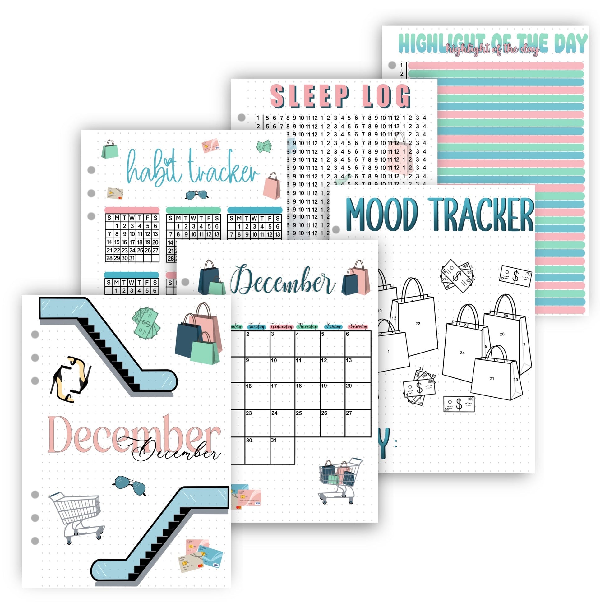 Get everything you need for the month of December with our monthly themed spreads! Each set includes all the essential pages for the month, including: